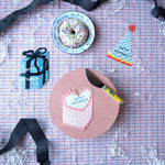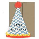 A fun, retro party hat design to celebrate someone special! This die-cut birthday card adds instant cheer to any gift. A6 folded card, blank inside, printed in the USA on sustainably sourced cardstock. Includes a kraft envelope.