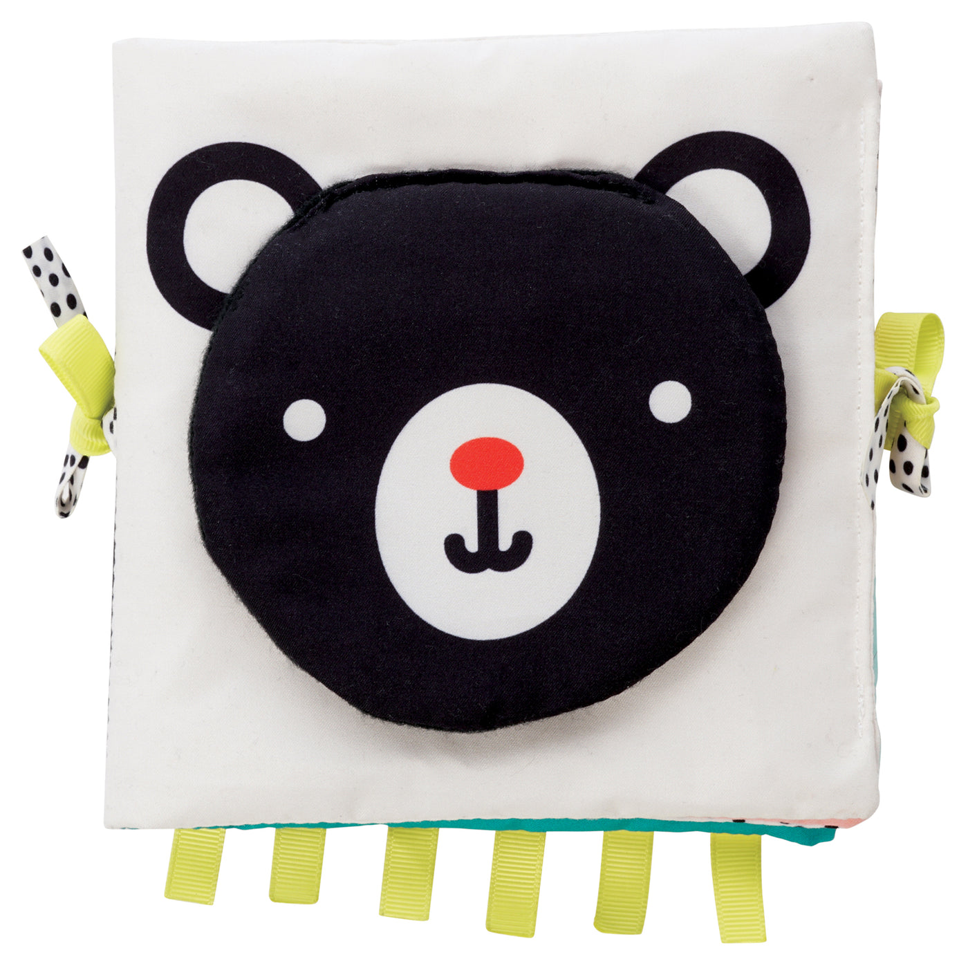 This foldable mat and book is a compact, portable tummy time toy perfect for home or travel. It features two engaging sides to support a baby’s developing vision. One side uses high-contrast black, white, and red graphics to help young infants focus and begin to see colors. The reverse side utilizes vibrant colors to foster vision as they begin to perceive the full color spectrum. The mat includes crinkle textures, peek-a-boo flaps, and a baby-safe mirror. Tie-able ribbons allow for easy folding and storage. For ages 0-1