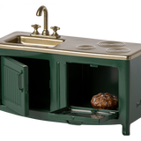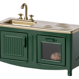 The kitchen is the heart of every home, and your Maileg mice are no exception! The Maileg kitchen in dark green has many playful details such as the beautiful green color and subtle details like the cabinets that open, a vintage inspired sink, and an oven with a freshly-baked pie. It's the perfect size for the mouse family.